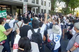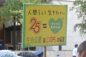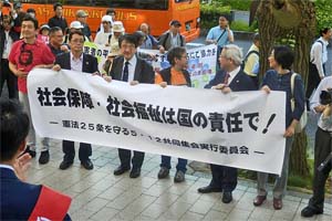 憲法25条を守る5・12共同集会実行委員会の国会請願デモを激励。「社会保障、社会福祉の予算を増やせ!」「戦争法は廃止しよう!」と力強くコール。