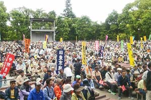 建設アスベストの早期解決をめざす全国決起集会に出席し、党を代表してあいさつ。自民党、民進党も出席。
