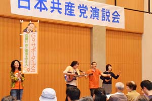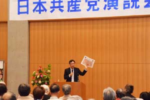 5月19日の4野党党首会談の4項目の確認事項を紹介すると大きな拍手。野党共闘の前進、比例代表で日本共産党の躍進への、埼玉選挙区で伊藤岳の必勝のために頑張りましょう!