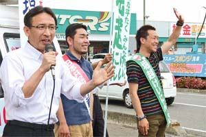 前橋市/群馬選挙区の堀越けいにんさん、参院比例の伊藤達也さんと一緒に訴え