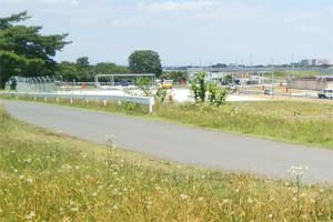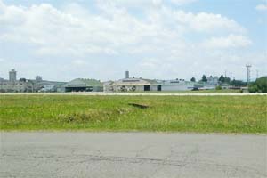 写真上は燃料施設の新設工事。新電波情報収集機配備に伴う施設建設の影響で移転新設しているものです。写真下は狭山市側から見た入間基地。滑走路の向こうに格納庫などの施設が並び、手前にCH47ヘリが駐機しています。
