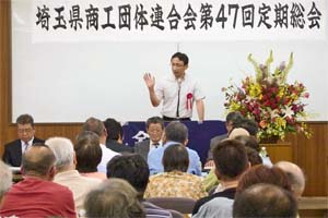 埼玉県商工団体連合会(埼商連)定期総会であいさつ。