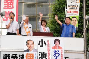 伊藤岳参院埼玉選挙区予定候補、おくだ智子参院比例予定候補、そして小池晃書記局長が訴え。