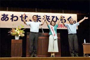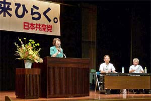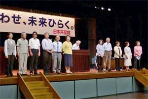 ひたちなか市で行われた茨城北部地区演説会。小林きょう子参院茨城選挙区予定候補と訴えました。