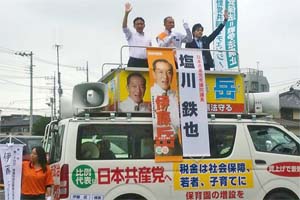 川越市内で伊藤岳埼玉選挙区候補と街頭から訴え。伊藤岳候補が「安倍政治をもう代えましょう!」と力強く呼びかけると、「そうだ!」と大きな掛け声が。