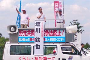 群馬県安中市、富岡市内で街頭演説。