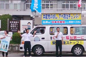 スーパー前で演説を聞いてくれた女性は「格差が広がるのが心配。なんだかキナ臭くなってきた感じ。共産党頑張って!」。