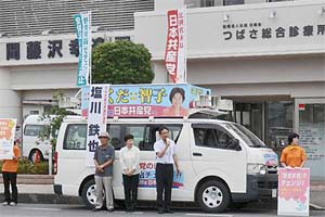 暑くなりそうです。埼玉県入間市。党市議団と街頭演説。