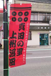 沼田市の中心市街地は「真田の里 上州沼田」と書いた赤いのぼり旗が林立。大河ドラマ「真田丸」効果で観光客も増えているそうです。