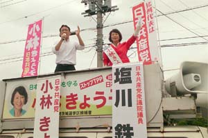 航空自衛隊百里基地のある茨城県小美玉市で、小林きょう子選挙区候補と訴え!