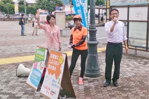 所沢市内で柳下県議、城下・矢作市議らと宣伝行動。