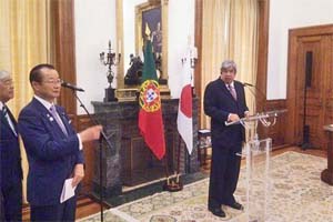ポルトガル国会のロドリゲス議長(社会党出身)を表敬訪問。河村建夫議院運営委員会委員長があいさつ。ポルトガル・日本友好議員連盟副会長のミゲル・ティアゴ議員(共産党)が同席、国会内を案内してもらいました。
