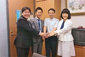 参院選群馬選挙区野党統一候補だった堀越けいにんさんが、民進党の宮崎岳志衆議院議員とともに来室。梅村さえこ衆議院議員と一緒にお迎えし、野党プラス市民が共同でたたかった選挙について懇談しました。