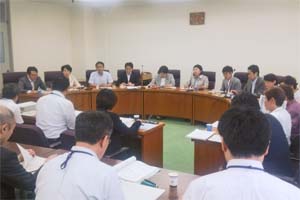 福島県庁で県担当者からヒアリング。避難指示区域解除の問題、避難者支援の取り組み、県民健康調査など意見交換。