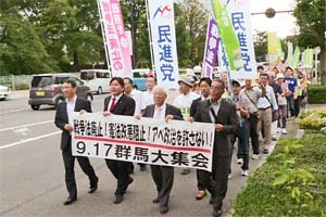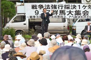 高崎市内で行われた「戦争法強行採決1ヶ年9・17群馬大集会」に参加。主催は1000人委員会、群馬憲法共同センター、ぐんま市民連合へいわの風。
