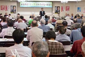 埼玉県日本共産党後援会総会であいさつ。参院埼玉選挙区候補だった伊藤岳さんもあいさつしました。