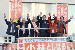 日本共産党、社民党、新社会党が推薦、緑の党が支持する小林候補は、県民と野党の共同候補です。鹿児島や新潟のように、栃木でも県政の流れを変えましょう!