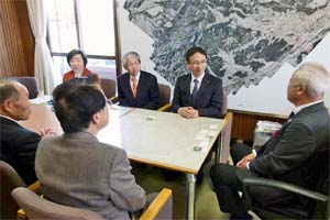 塩谷町の放射性指定廃棄物処分場問題で、見形和久町長と懇談。小林としはる県知事候補、野村節子県議、橋本巌町議らと一緒です。