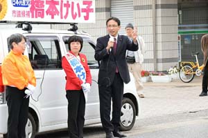 3人の市議候補の応援に駆けつけました。