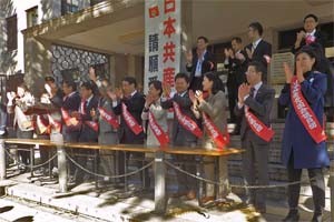 国民大運動実行委員会主催の「安倍改憲NO!実質賃金の底上げ、16秋季年末闘争行動」の請願デモを激励。