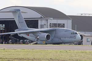 C1輸送機に代わって、埼玉・航空自衛隊入間基地に配備されることが計画されている、C2大型輸送機。11月6日、入間基地に飛来