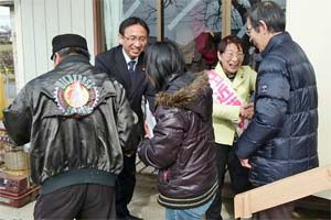 最初に宮城地域の近藤よしえ事務所開きであいさつ。地元の自治会長さんや大規模木質火力発電建設計画反対の市民運動の代表など、近藤よしえ市議の活躍への期待が寄せられました。 |