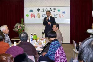 中道なみ子新春のつどいに参加。中道市議を始め市議団の奮闘で、公営住宅へのエレベーター設置が実現。市民要求あるところ日本共産党の議員あり。全力で奮闘しています。 |