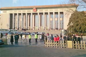 「日中議会交流委員会」の会場である人民大会堂。中国の一院制議会である全国人民代表大会(全人代)は、憲法に「最高国家権力機関」と規定されています。
