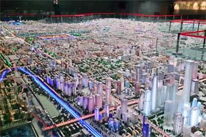 北京市規画展覧館の視察。北京市の歴史と現在、未来について、映像と展示で紹介。写真は現在の北京市街地の立体模型。