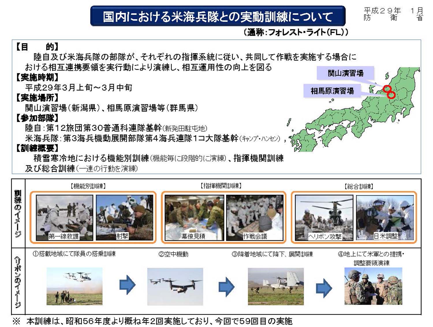 演習は相馬原演習場と駐屯地、新潟県の関山演習場で3月上旬から中旬にかけて行われる予定。米海兵隊のMV22オスプレイの参加も計画されています。