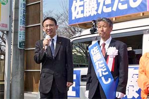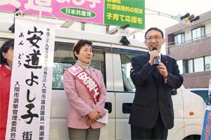 入間市議選告示。安道よし子・吉沢かつら・小出わたる・佐藤ただしの4議席確保に全力を挙げます。安道候補と佐藤候補の告示第一声に駆け付けました!