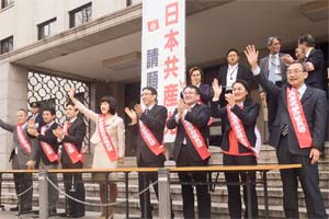 「共謀罪は国会提出させない!」「雇用破壊政治ストップ!」「利権政治をやめさせよう!」とエールの交換。がんばろう!