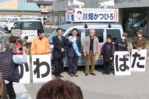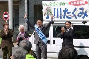 私は、川畑かつひろ候補と小川たくみ候補の応援に。