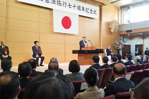 日本国憲法施行70周年記念行事。 衆参議長、首相、最高裁長官による記念植樹や記念式典に同席。 |