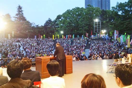 日比谷野外音楽堂。「共謀罪廃案・安倍政権の改憲暴走を止めよう!5・16大集会」は、会場いっぱいの参加者!