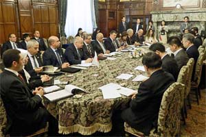 エジプト国会のアリ・アブデルアール議長一行が大島衆院議長を表敬訪問。日本共産党国会議員団を代表して同席しました。