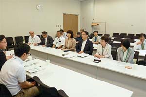 参加者は、自衛隊病院が海外から送られた傷病者などを受け入れるのかなど、拡張される基地がどんな役割を持つのか住民に説明するよう要求。その際は、留保地周辺にとどめず、全市民に対して説明を尽くすよう求めました。