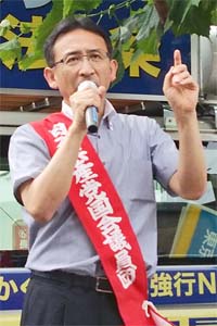演説中に「がんばってください」と握手を求めてくる男性。東京大空襲を経験したという女性は「孫が自衛隊に入っている。自衛隊を海外派兵させないという話を聞いて涙が出そうになった。共産党ですか? がんばってください」。