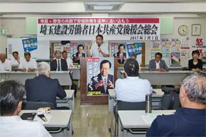 埼玉建設労働者後援会総会であいさつ。