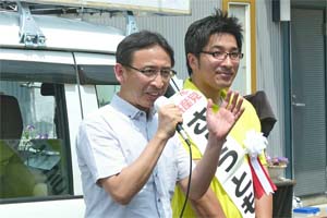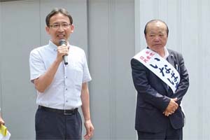 埼玉・三郷市議選告示/いなば春男候補と佐藤ともひと候補の応援に