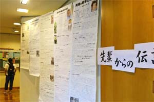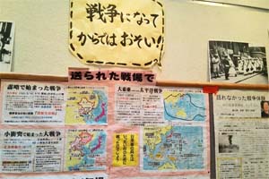 明治維新以降の戦争の歴史の年表、太平洋戦争の戦場の実相、風船爆弾に使用された小川和紙、戦争体験者の聞き取りを掲示した「先輩からの伝言」、米軍横田基地強化の動き、核兵器禁止条約と非核の運動など、ていねいに調べて展示されています。