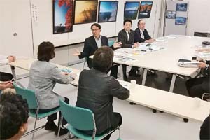十和田湖畔の休屋(やすみや)地区で、十和田市と十和田湖国立公園協会の方からお話を伺いました。宿泊施設や物産店の閉鎖が続き、廃屋が景観上も問題になっています。主要な土地は環境省が管理しており、廃屋対策についても環境省のイニシアチブが重要です。 奥入瀬渓流と一体に十和田湖の魅力を訴えていきたいとのこと。公共交通機関の不便さなどのお話もありました。 |