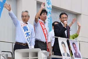 宇都宮市内で街頭演説。小池かずのり比例予定候補、青木ひろし栃木1区予定候補と訴えました。