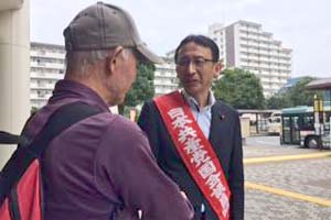埼玉・所沢市/西武鉄道・航空公園駅前で朝の宣伝