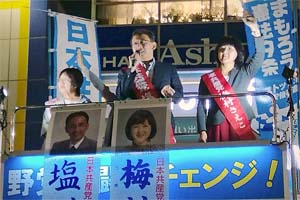 梅村さえこ前衆院議員(比例予定候補)、山本ゆう子埼玉5区予定候補と大宮駅東口で訴えました。