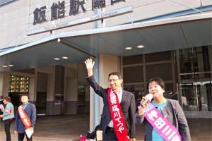 埼玉・飯能市/西武鉄道飯能駅前で朝の駅頭宣伝