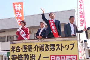 「憲法破壊、民意無視の安倍政治の行き着く先が国政私物化。今度の選挙は絶好のチャンス。市民と野党の共闘の勝利、日本共産党の躍進で安倍政権に退場の審判を下そう!」という訴えに「そうだ!」の大きなかけ声。