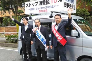 あさか英義埼玉4区予定候補と一緒に街頭宣伝。新座市内3ヵ所、朝霞市内1ヵ所で訴えました。