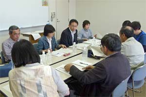 懇談にはつくば市の橋本けい子、田中サトエ両市議、滝口隆一同市委員長、山中たい子前県議、常総市の堀越道男市議、桜川市の菊池伸浩市議らが参加。「屋根が吹き飛ばされている家では、ブルーシートなどではとても対応できない」など、被災状況の報告を受けた。