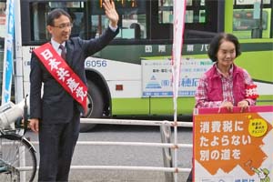 飯能駅で、神田三春埼玉9区予定候補と宣伝行動。その後、狭山ヶ丘駅周辺2ヵ所と新所沢駅西口で、つじモトミ埼玉8区予定候補や柳下県議と一緒に訴えました。
